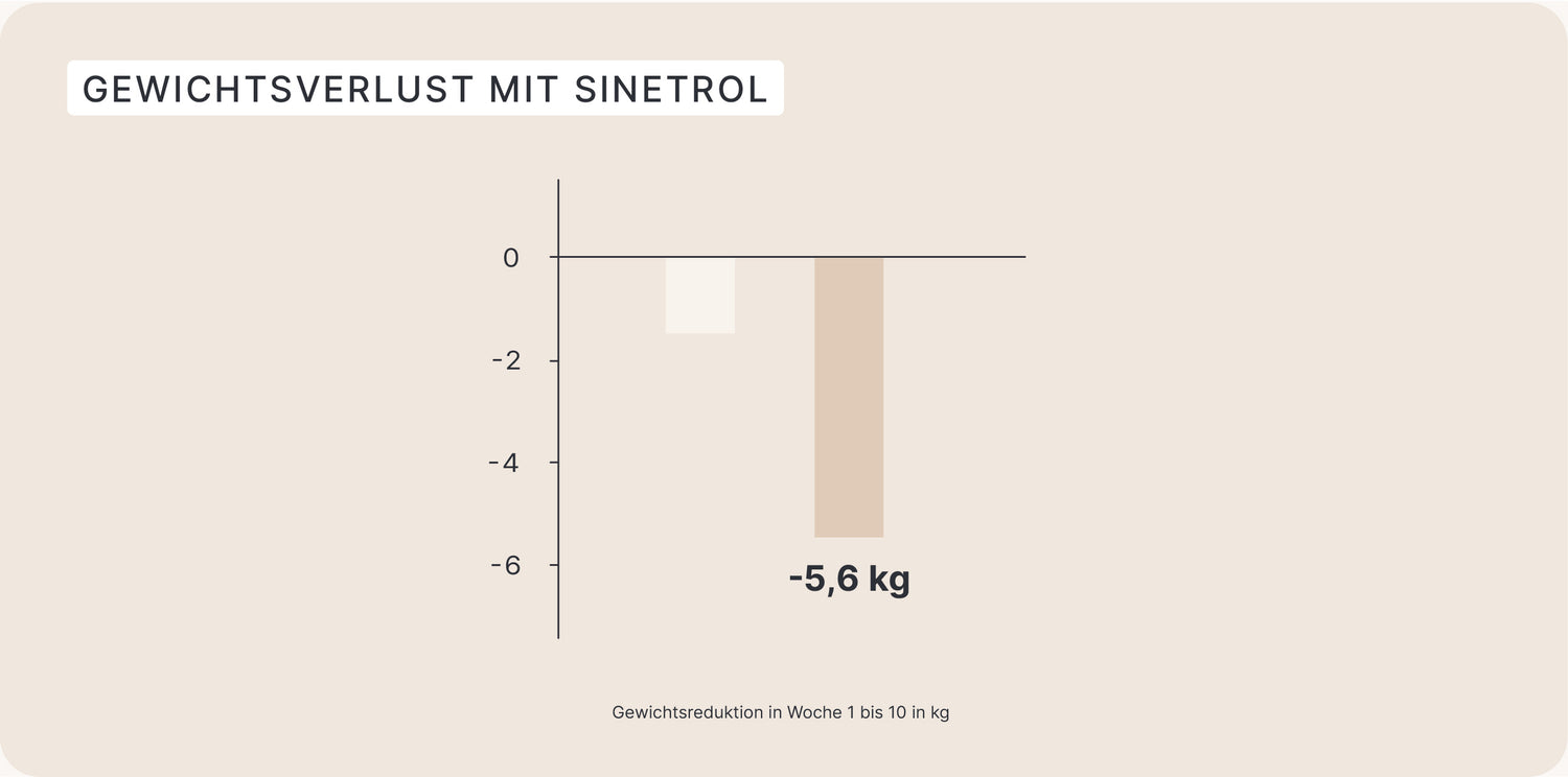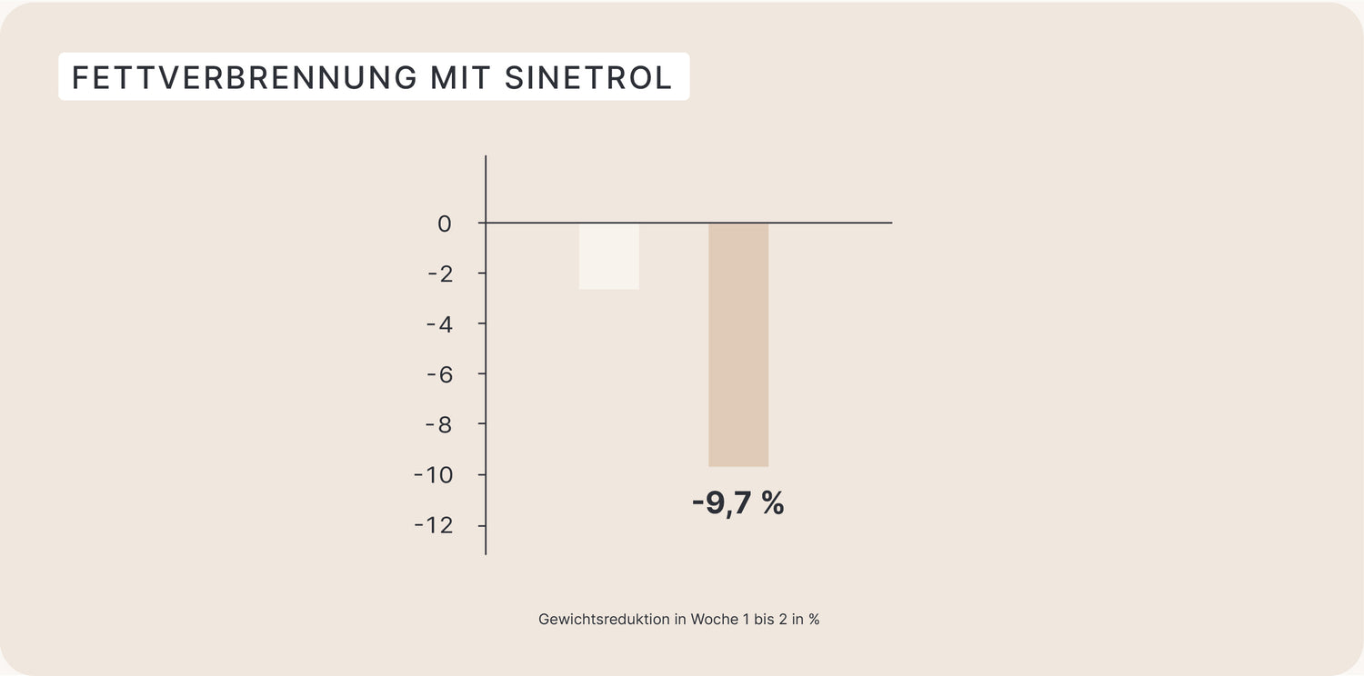 Klinische Untersuchungen haben ergeben, dass Sinetrol®* den Ruhenergieverbrauch erhöht, Körperfett reduziert und sich positiv auf den Gewichtsverlust auswirkt**. Wenn Du Deine Fettverbrennung also unterstützen möchtest, ist dieser Wirkstoff eine gute Wahl. Achte aber bitte darauf, Dich an die Herstellerangaben zu halten und trotzdem einen gesunden Lebensstil zu führen.