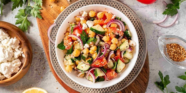 A mezzogiorno, la nostra insalata di ceci con feta sarà un piatto buono, leggero e nutriente con solo 403 kcal. Facile e veloce anche come “schiscetta”, è ideale per la pausa pranzo al lavoro. Buon appetito!