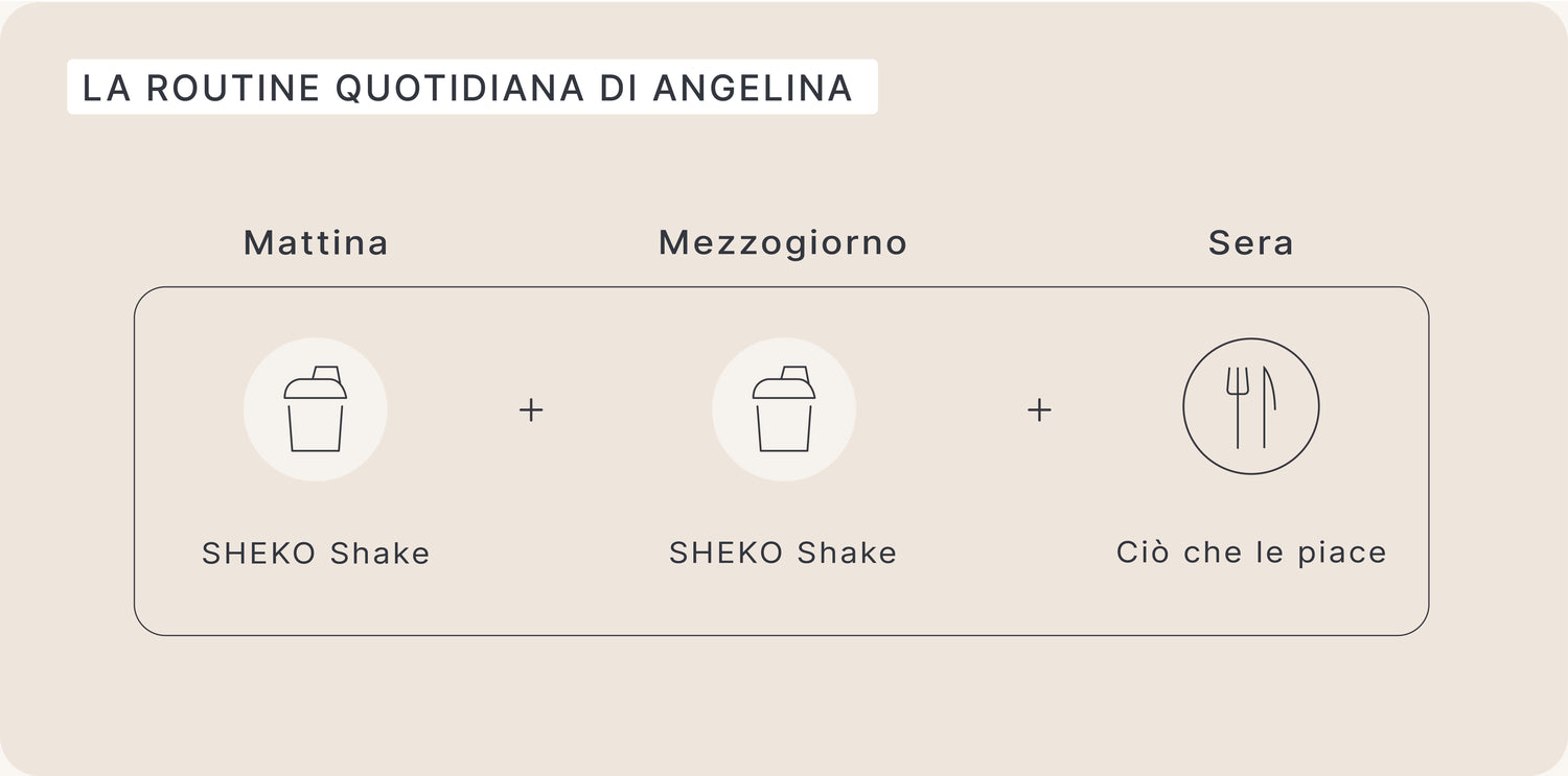 “Con SHEKO e nient'altro. Ho iniziato sostituendo la colazione e il pranzo con un frullato. La sera ho mangiato normalmente. Ho preso anche le capsule bruciagrassi”.