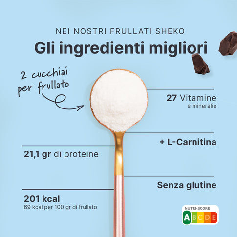 Il frullato SHEKO ti fornisce tutto ciò di cui hai bisogno e ti riempie. Ed è un modo semplice per risparmiare calorie.