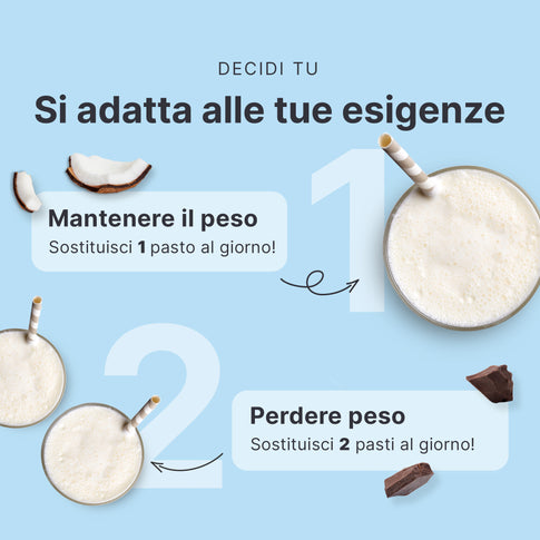 Se vuoi mantenere il tuo peso corporeo, sostituisci 1 pasto al giorno con il nostro frullato, che sia colazione, pranzo o cena.