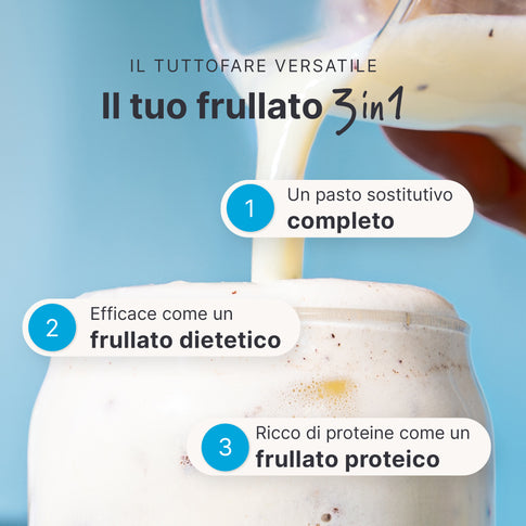 - Frullato 3-in-1. Risparmia calorie, sostituisci un pasto e ricevi preziose proteine in un solo gesto.