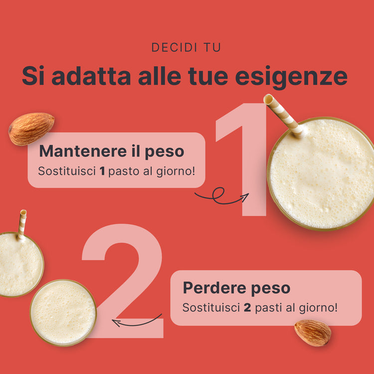 Se vuoi mantenere il tuo peso corporeo, sostituisci 1 pasto al giorno con il nostro frullato, che sia colazione, pranzo o cena.