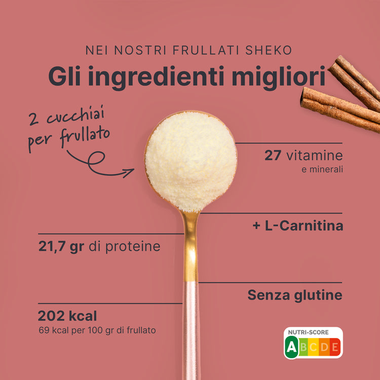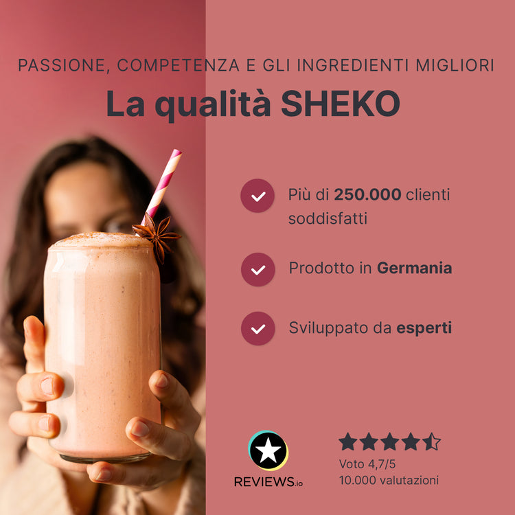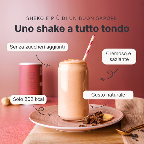 Il frullato SHEKO ti fornisce tutto ciò di cui hai bisogno e ti riempie. Ed è un modo semplice per risparmiare calorie.