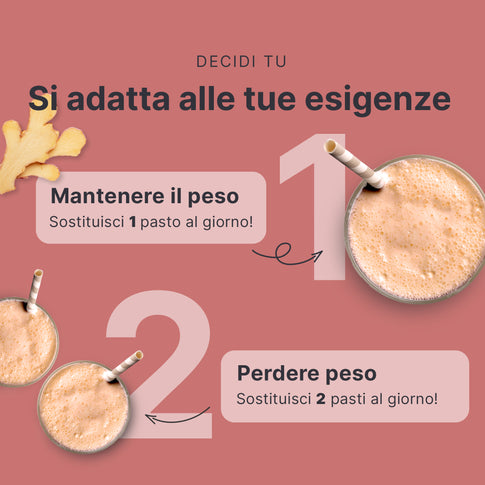 Se vuoi mantenere il tuo peso corporeo, sostituisci 1 pasto al giorno con il nostro frullato, che sia colazione, pranzo o cena.