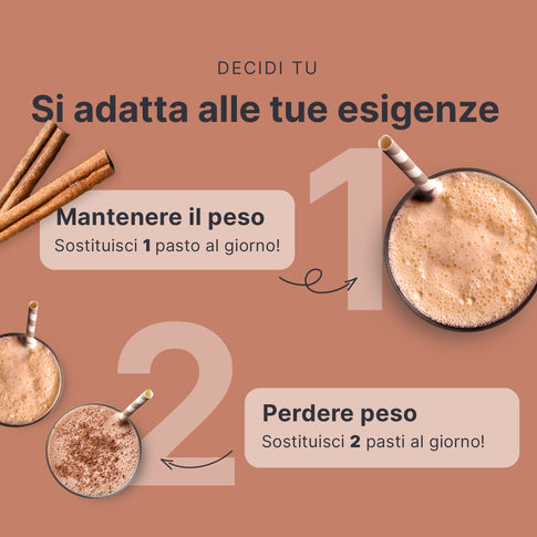 Se vuoi mantenere il tuo peso corporeo, sostituisci 1 pasto al giorno con il nostro frullato, che sia colazione, pranzo o cena.