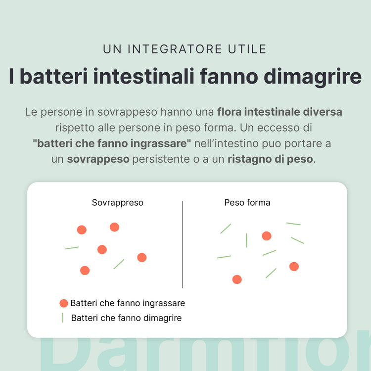 Perdere peso può essere reso più difficile da diversi fattori, tra cui una flora intestinale disturbata. Gli studi dimostrano che le persone in sovrappeso hanno spesso una flora intestinale diversa da quella delle persone di peso normale. Un eccesso di “batteri ingrassanti” nell'intestino può portare a un'obesità persistente o a una situazione di stallo del peso. Il regolatore della flora intestinale aiuta a trovare il giusto equilibrio.