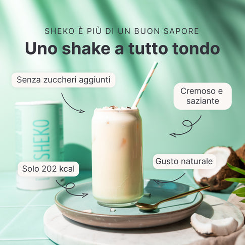 Il frullato SHEKO ti fornisce tutto ciò di cui hai bisogno e ti riempie. Ed è un modo semplice per risparmiare calorie.