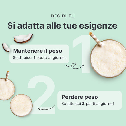 Se vuoi mantenere il tuo peso corporeo, sostituisci 1 pasto al giorno con il nostro frullato, che sia colazione, pranzo o cena.