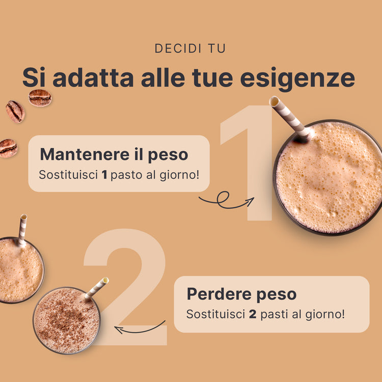 Se vuoi mantenere il tuo peso corporeo, sostituisci 1 pasto al giorno con il nostro frullato, che sia colazione, pranzo o cena.