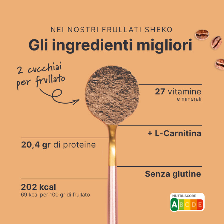 Il frullato SHEKO ti fornisce tutto ciò di cui hai bisogno e ti riempie. Ed è un modo semplice per risparmiare calorie.