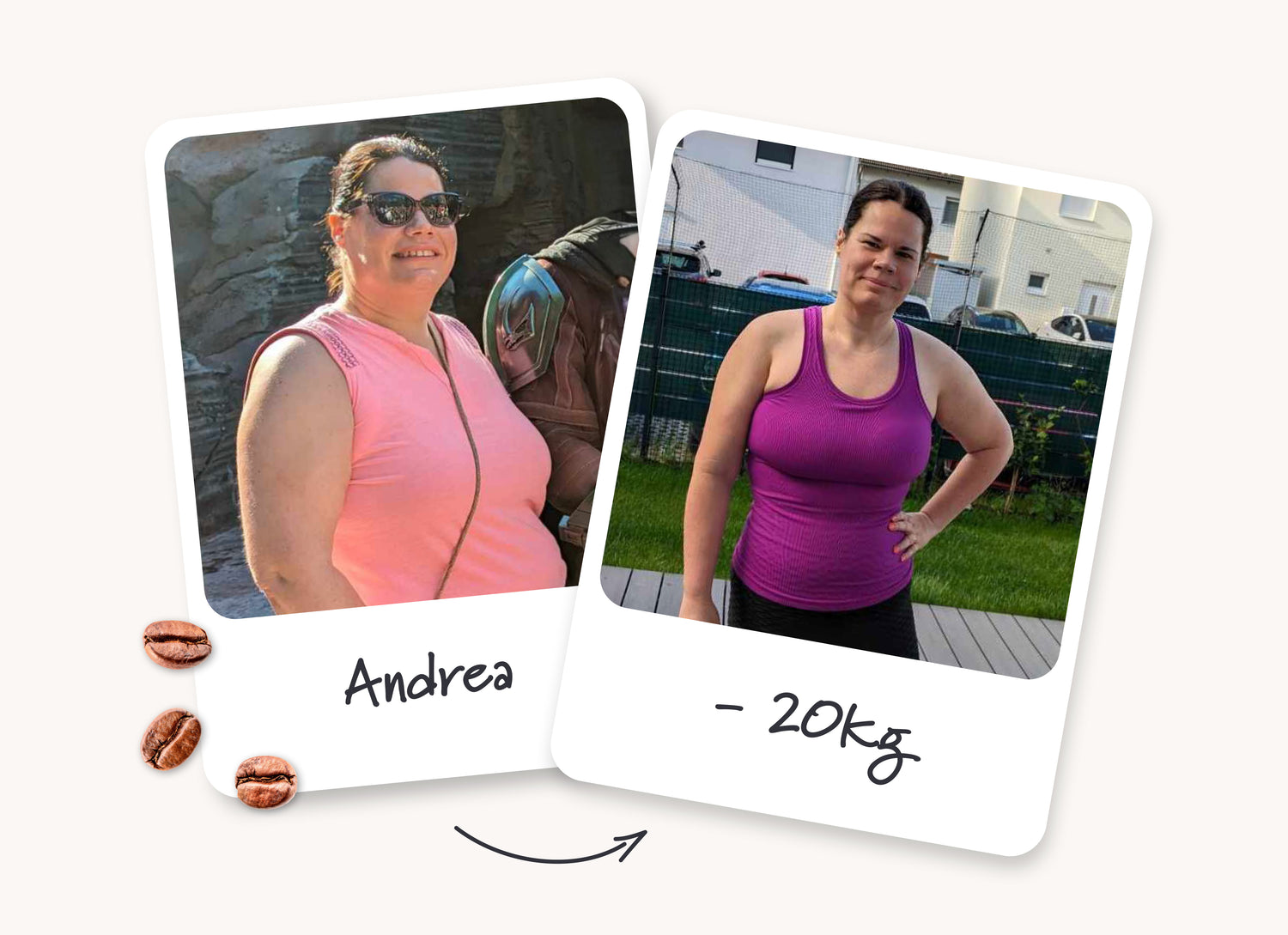 Mit Anfang 20 nimmt Andrea mit ‚Low Carb‘ ab. Über zehn Jahre später klappt’s damit nicht mehr. „Ich glaube, es gibt nicht dieses ‚eine Richtig‘, das Dein Leben lang funktioniert. Du musst offen bleiben, auch mal Neues ausprobieren.