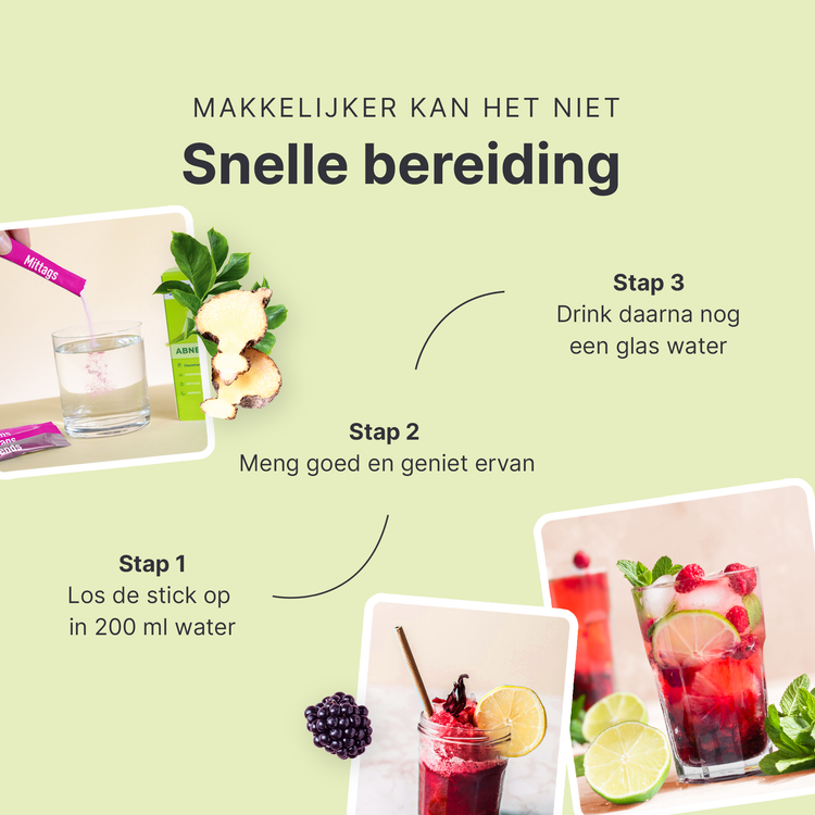 Löse morgens, mittags und abends - etwa 30 Min. vor der jeweiligen Mahlzeit - den Inhalt eines Sticks in 200 ml Wasser auf. Trinke zügig. Damit die Kur optimal funktionieren kann, empfehlen wir, anschließend ein weiteres Glas Wasser zu trinken. Die empfohlene tägliche Verzehrmenge darf nicht überschritten werden.