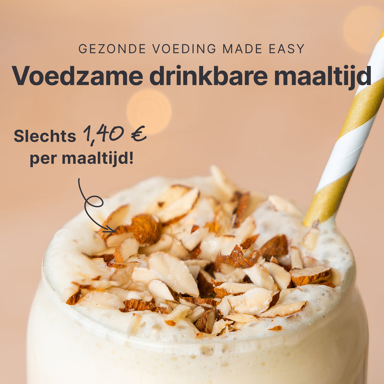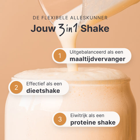 *De voedingswaarden zijn berekend met de vanillesmaak als voorbeeld. Let op: de shake is alleen een complete maaltijdvervanger met koemelk.