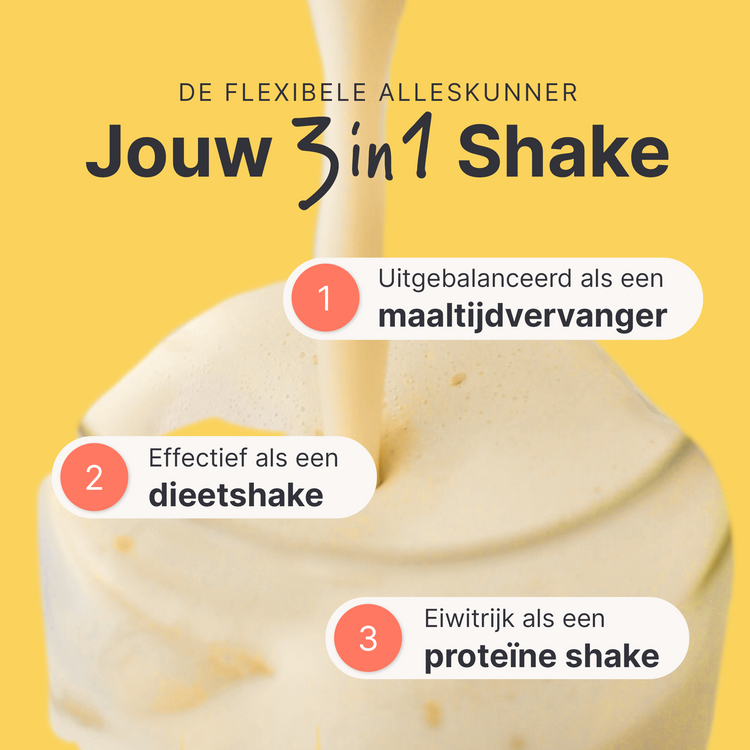 Het jojo-effect treedt op wanneer je in korte tijd een ongezonde hoeveelheid gewicht verliest. Als reactie op een veel te lage inname van calorieën en voedingsstoffen schakelt je lichaam over op de spaarstand en verandert het metabolisme. Je caloriebehoefte neemt af, waardoor je langzamer afvalt en sneller weer aankomt. Met SHEKO Shakes bereik je een gezond gewichtsverlies en voorkom je gebreksverschijnselen. Je stofwisseling blijft actief en je bespaart toch calorieën. De shake helpt je ook om na het dieet op gewicht te blijven: Vervang gewoon één maaltijd per dag.
