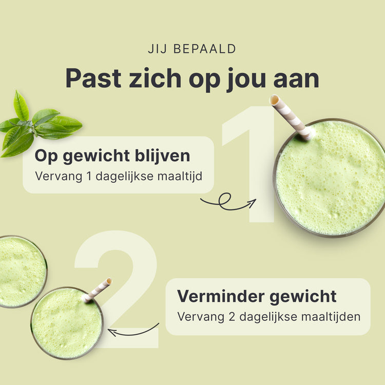 Behoud je gewichtAls je je 'feel good'-gewicht wilt behouden, vervang dan 1 maaltijd per dag door onze shake. Of het nu ontbijt, lunch of diner is.