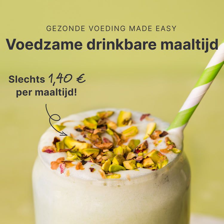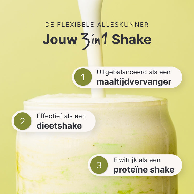 *De voedingswaarden zijn berekend met de vanillesmaak als voorbeeld. Let op: de shake is alleen een complete maaltijdvervanger met koemelk.