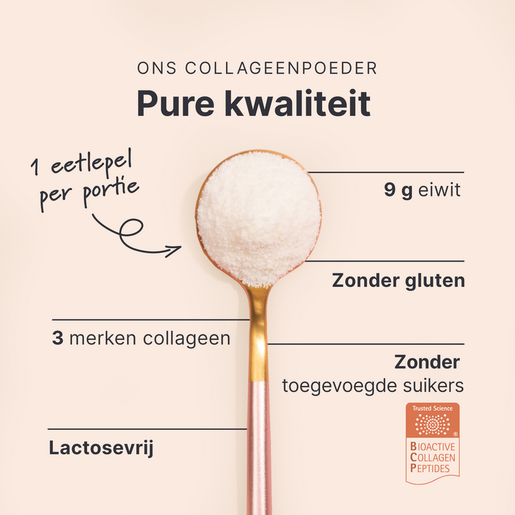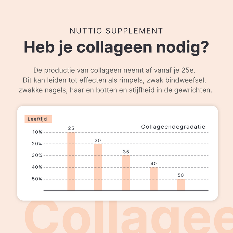 "Bioactive collagen peptides treatment promoted an increase of 12% nail growth rate and a decrease of 42% in the frequency of broken nails. Additionally, 64% of participants achieved a global clinical improvement in brittle nails, and 88% of participants experienced an improvement 4 weeks post-treatment."Bronnen: