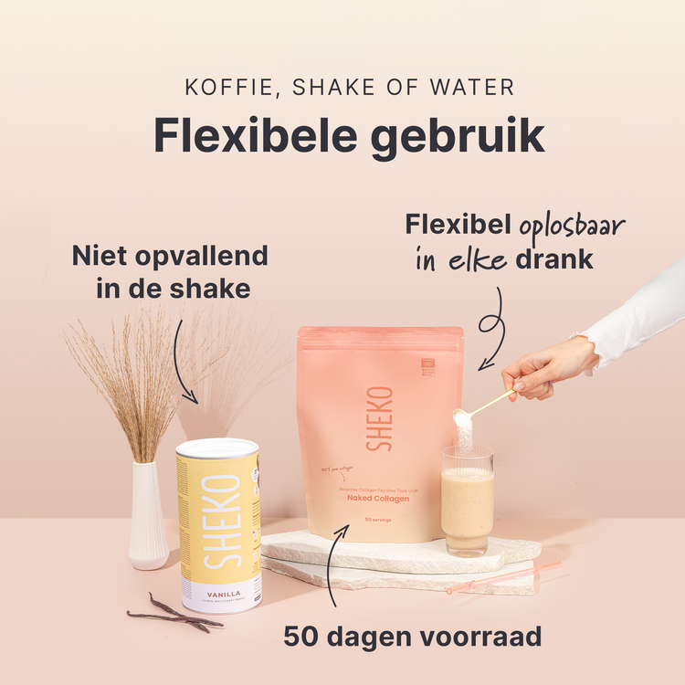 Unser SHEKO Multi Kollagen wird in Deutschland hergestellt, regelmäßig laborgeprüft und kommt ganz ohne Zuckerzusatz, Füllstoffe oder künstliche Zusätze aus. Dabei ist es komplett geschmacks- und geruchsneutral und löst sich klumpenfrei in jeder Flüssigkeit auf.