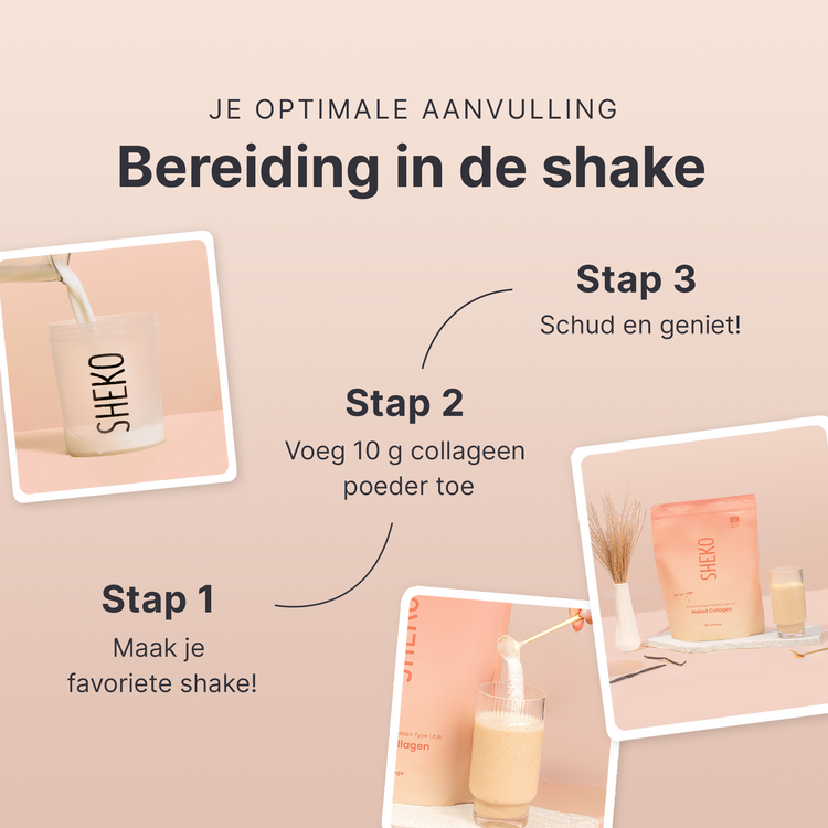 Den größten Mehrwert holst Du aus der Kombination beider Produkte. Das Beste: Das Kollagen schmeckt man im Shake überhaupt nicht raus. Mit dieser Reihenfolge klappt es am besten.