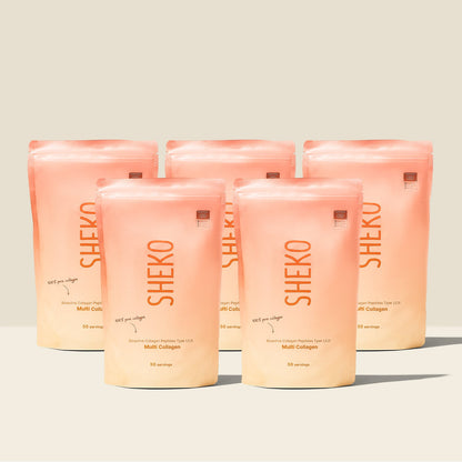 Kollagen ist nicht gleich Kollagen. Damit Dein Körper das Kollagen überhaupt aufnehmen und verwerten kann, braucht es spezielle Voraussetzungen. Unser SHEKO Multi Kollagen wird durch enzymatische Hydrolyse in besonders feine, bioaktive Peptide aufgespalten. Das Ergebnis: eine außergewöhnlich hohe Bioverfügbarkeit, schnelle Aufnahme im Körper und optimale Verträglichkeit – für sichtbare und spürbare Ergebnisse.