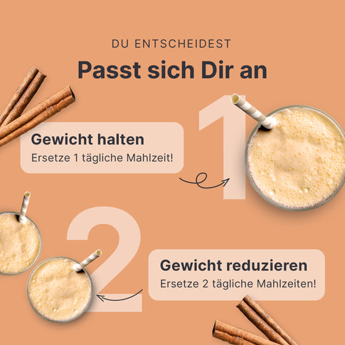 Das Ersetzen von zwei der täglichen Hauptmahlzeiten durch je einen SHEKO Shake trägt zur Gewichtsabnahme im Rahmen einer kalorienarmen Ernährung bei. Das Ersetzen einer täglichen Mahlzeit hilft Dir, Dein Gewicht zu halten.