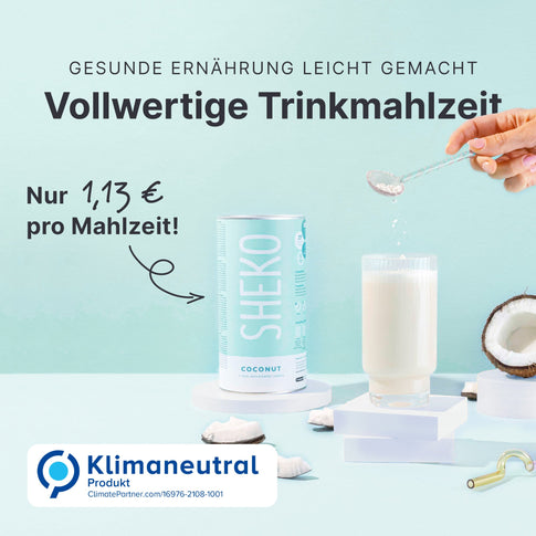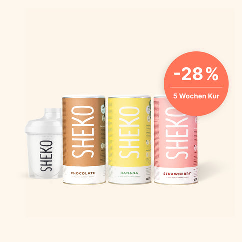 Der SHEKO Shake erfüllt den gewichtskontrollierenden Zweck nur im Rahmen einer kalorienarmen, abwechslungsreichen und ausgewogen Ernährung. Dafür ist es wichtig, dass Du auch andere Lebensmittel zu Dir nimmst, sowie die Angaben zur Zubereitung einhältst. Achte dabei auf eine gesunde Lebensweise und, dass Du täglich genügend Wasser oder ungesüßten Tee zu Dir nimmst.