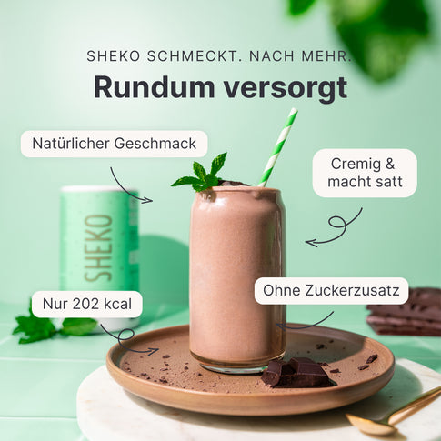 Der SHEKO Shake erfüllt den gewichtskontrollierenden Zweck nur im Rahmen einer kalorienarmen, abwechslungsreichen und ausgewogen Ernährung. Dafür ist es wichtig, dass Du auch andere Lebensmittel zu Dir nimmst, sowie die Angaben zur Zubereitung einhältst. Achte dabei auf eine gesunde Lebensweise und, dass Du täglich genügend Wasser oder ungesüßten Tee zu Dir nimmst.