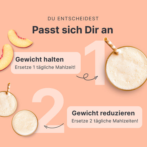 Das hängt ganz von Deinem persönlichen Ziel ab! Wenn Du Gewicht verlieren möchtest, ersetzt Du zwei von drei täglichen Mahlzeiten durch Deinen liebsten Balance Shake. Dabei kannst Du jeden Tag neu entscheiden, welche Mahlzeiten das sind. Wenn Du Dein Wohlfühl-Gewicht halten möchtest, ersetzt Du nur noch eine Mahlzeit am Tag mit unserem Shake. Keine Sorge vor dem Jojo-Effekt – mit einer ausgewogenen Ernährung drumherum bist Du bestens aufgestellt. In unserem Starter-Leitfaden findest Du viele hilfreiche Tipps für Deinen erfolgreichen Abnehmweg!