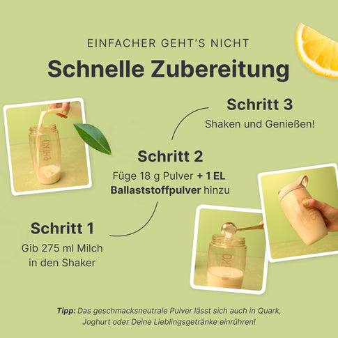 Für die bestmögliche Wirkung empfehlen wir die Kombination aus Balance Shake, Ballaststoffen und unserem Kollagenpulver.