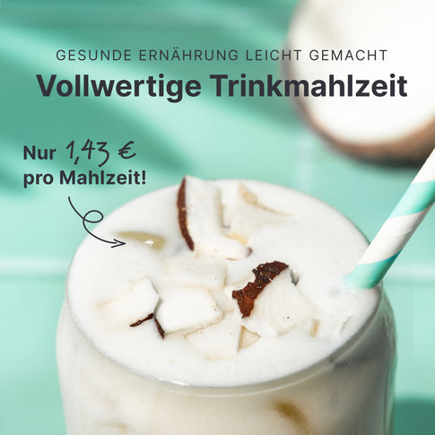 Die Werte der Milchalternativen können je nach Hersteller varrieren. Bitte beachte auch, dass unser Shake mit fettarmer Kuhmilch konzipiert wurde und es mit Alternativen durch verschiedene Vitamine und Mineralien eventuell keinen vollwertigen Mahlzeitersatz ergibt.