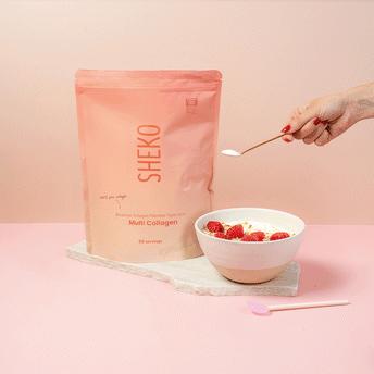 Kollagen ist nicht gleich Kollagen. Damit Dein Körper das Kollagen überhaupt aufnehmen und verwerten kann, braucht es spezielle Voraussetzungen. Unser SHEKO Multi Kollagen wird durch enzymatische Hydrolyse in besonders feine, bioaktive Peptide aufgespalten. Das Ergebnis: eine außergewöhnlich hohe Bioverfügbarkeit, schnelle Aufnahme im Körper und optimale Verträglichkeit – für sichtbare und spürbare Ergebnisse.